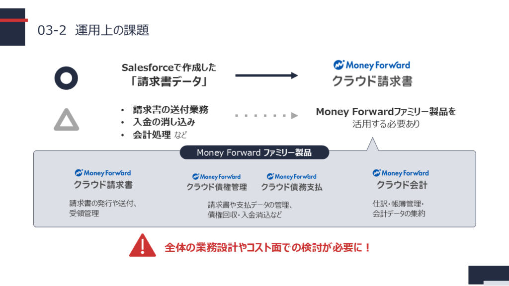 さらにSalesforceとの連携という観点から、マネーフォワードの利用時に気をつけるポイントまで掘り下げていきます。