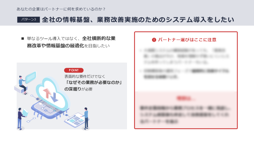 パターン③向け|全社最適化・業務改善を実現できるパートナーかを見抜く質問