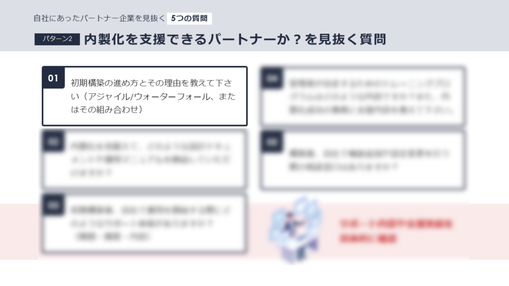 パターン②向け|内製化を支援できるパートナーかを見抜く質問