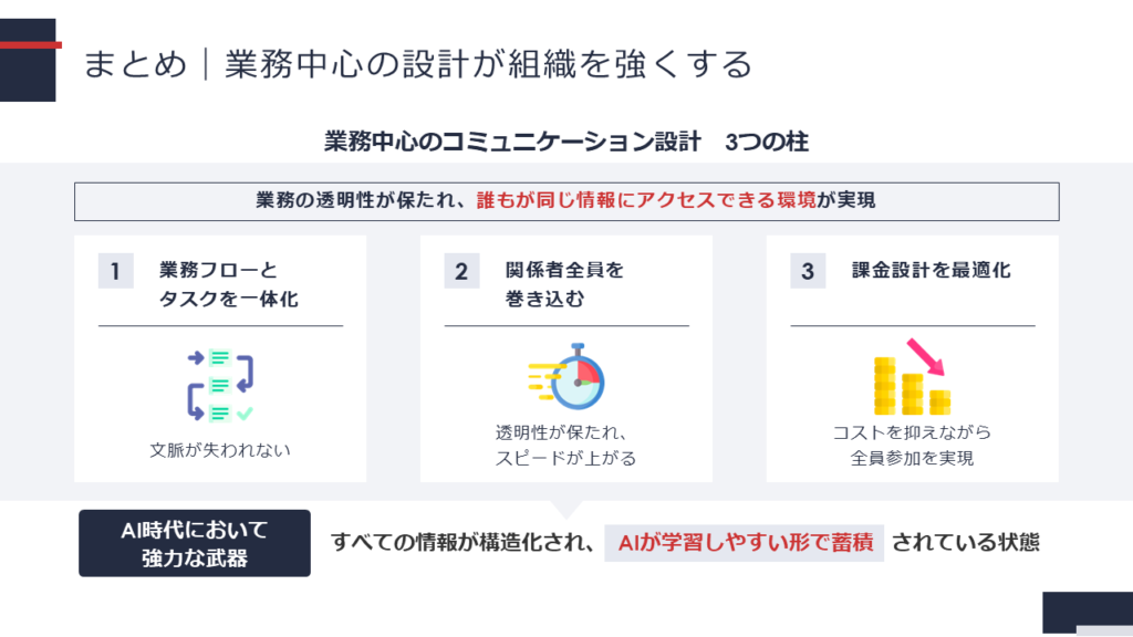 ──これこそが、業務中心のコミュニケーション設計がもたらす最大の成果です。