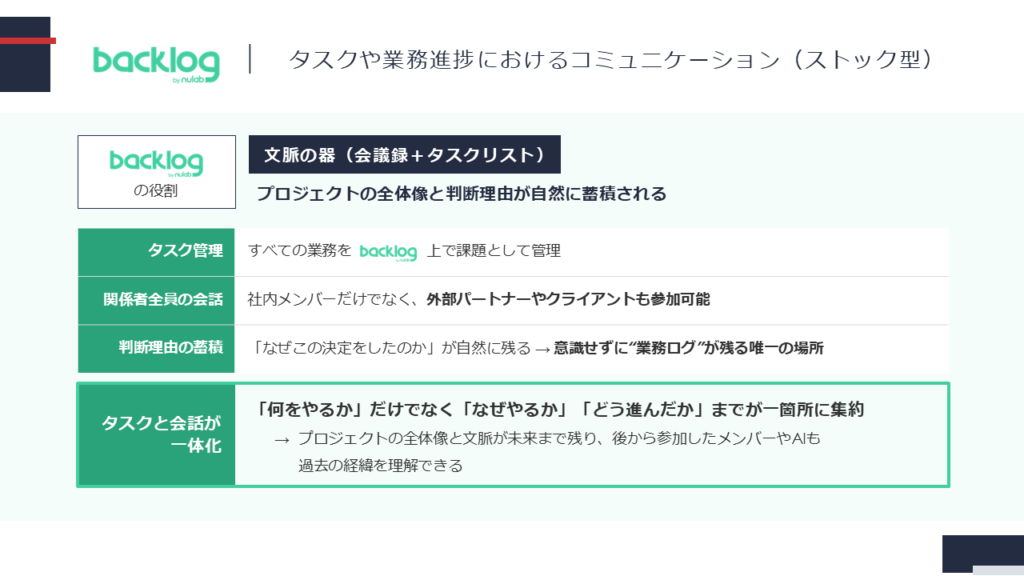 Backlogの役割:文脈の器(会議録+タスクリスト)