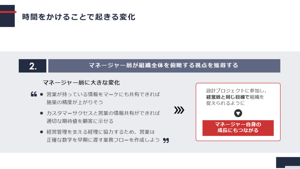 ② マネージャー層が組織全体を俯瞰する視点を獲得する