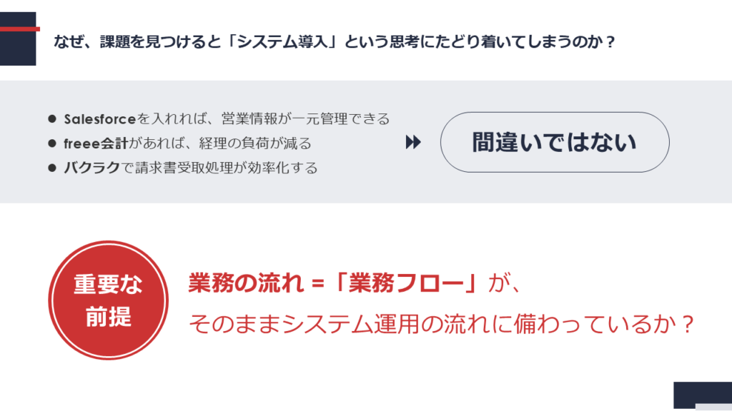 【システムは”ビジネス成長や業務遂行における課題解決のため”に導入するもの】