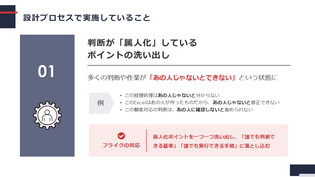 時間をかけて業務を整理していくと、「何をシステムに任せ、何を人がやるべきか」が自然に見えてきます。