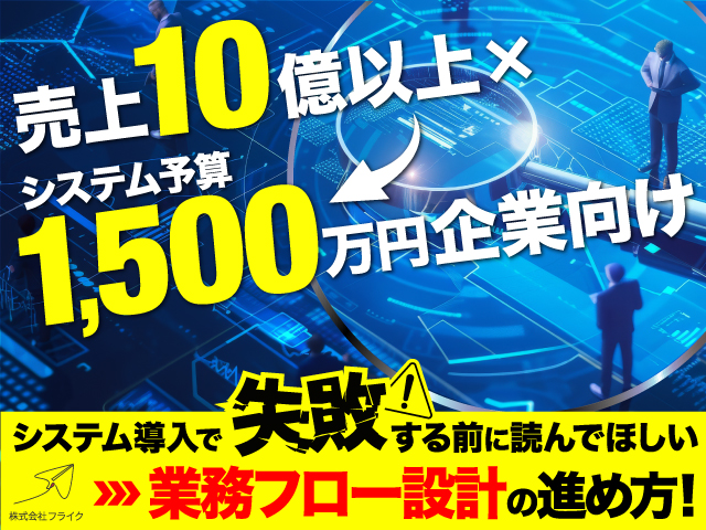新作ブログ『売上10億以上×システム予算1,500万円企業向け〜システム導入に失敗する前に読んでほしい業務フロー設計の進め方〜』を公開いたしました。