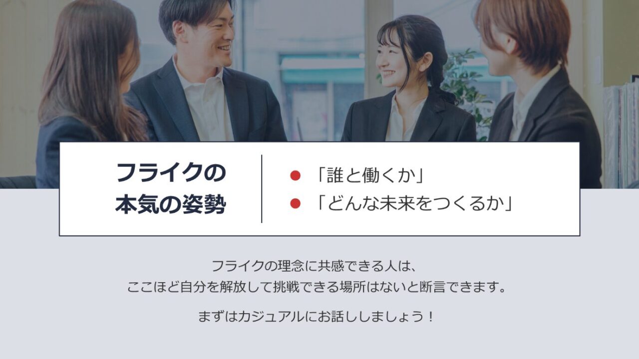 「誰と働くか」「どんな未来をつくるか」という、フライクの本気の姿勢です。